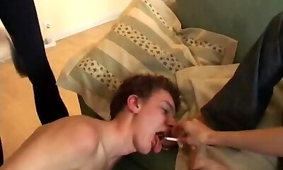 Girls get excited making him eat and suck toes