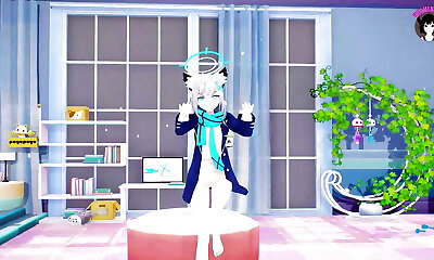 Sunaookami Shiroko - Dance + POV Footjob & Cowgirl (3D Anime Porn)