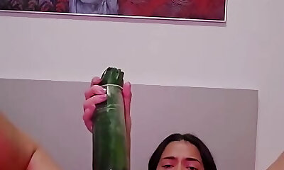 fucking her pussy with a immense cucumber, until she shoots a load deliciously, she is a slut