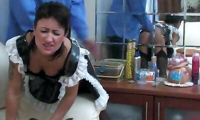 Excellent hot blonde housemaid on the laps of a dominant brunette cougar