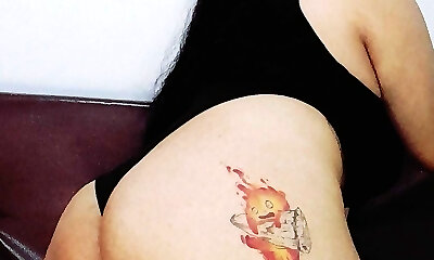 татуированная красотка наклоняется и шлепает себя по заднице в любительском шоу по веб-камере