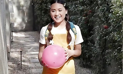 Teen Princess Ella Voneva Gets Her Asian Pussy Rammed By Diamond Banks' Monstrous Strap On - LittleAsians FFM Three Way