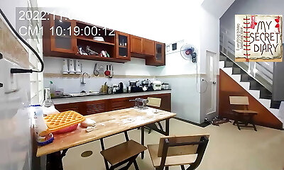 Housewife in pantyhose in the kitchen. Naked maid gets an orgasm while cooking. c3 Date