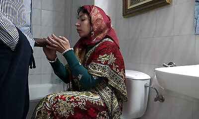 Busty Muslim babe in hijab is face fucked and jizzed and predominated by mischievous man
