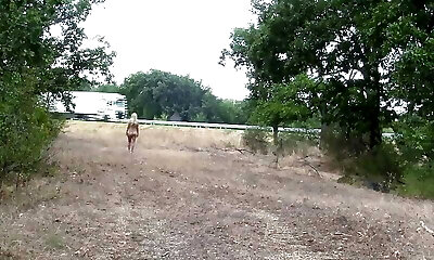 A chained slave is disciplined to dance bare on the highway