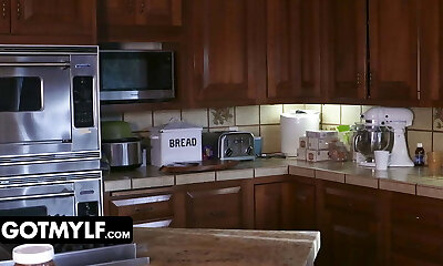 She fucks her boss and gulps his cum in the kitchen
