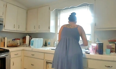 Pregnant and kinky housewife wiggles her booty and lovely tits